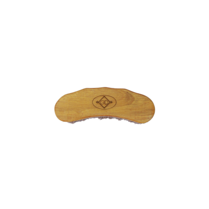 Tissus et matériaux: Les poils longs et souples en polypropylène permettent d'enlever facilement la saleté. Le bloc de bois est verni pour être hydrofuge et anti-saleté.