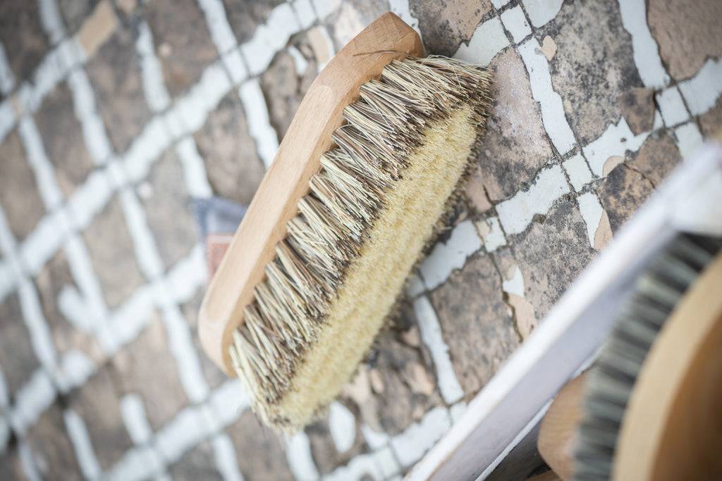 Bouchon à poils courts Pénélope en bois et fibres, avec logo embossé. Poils courts et durs. Taille Moyen modèle