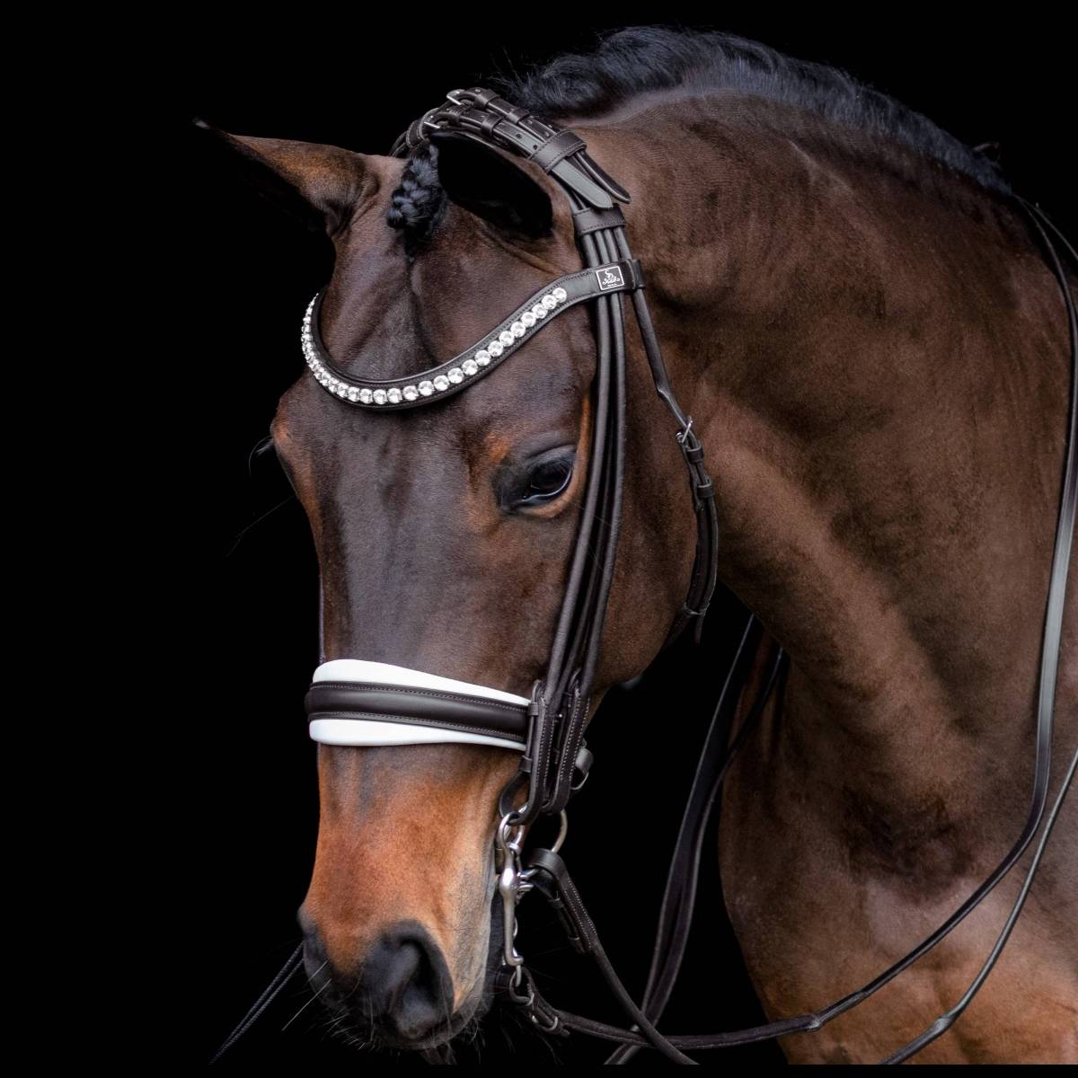 La muserolle est de forme anatomique et est plus large au milieu et très étroite aux extrémités, pour éviter la pression sur les nerfs du visage.