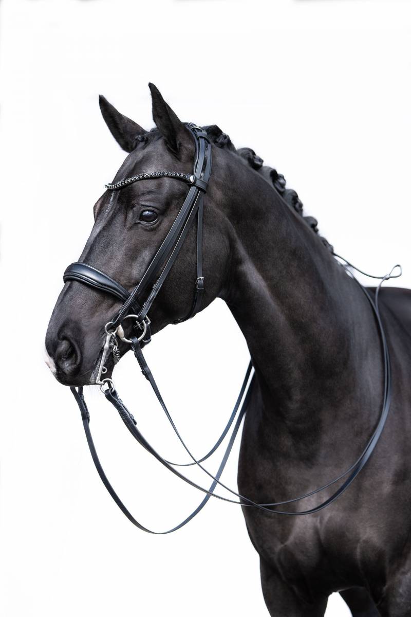 Découvrez la bride de dressage Grace de HKM, conçue en cuir de qualité supérieure pour offrir un confort optimal à votre cheval. Ses finitions soignées et son design élégant, agrémenté de strass, en font un accessoire incontournable pour les cavaliers exigeants.