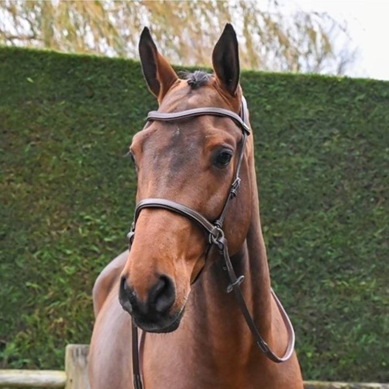 Le frontal, la muserolle et la têtière sont tous doublés de cuir perforé, ce qui leur confère une grande résistance et une esthétique moderne. La têtière est également anatomique et doublée pour un confort optimal. Cette conception permet de répartir la pression de manière homogène, minimisant les points de pression inconfortables pour le cheval.