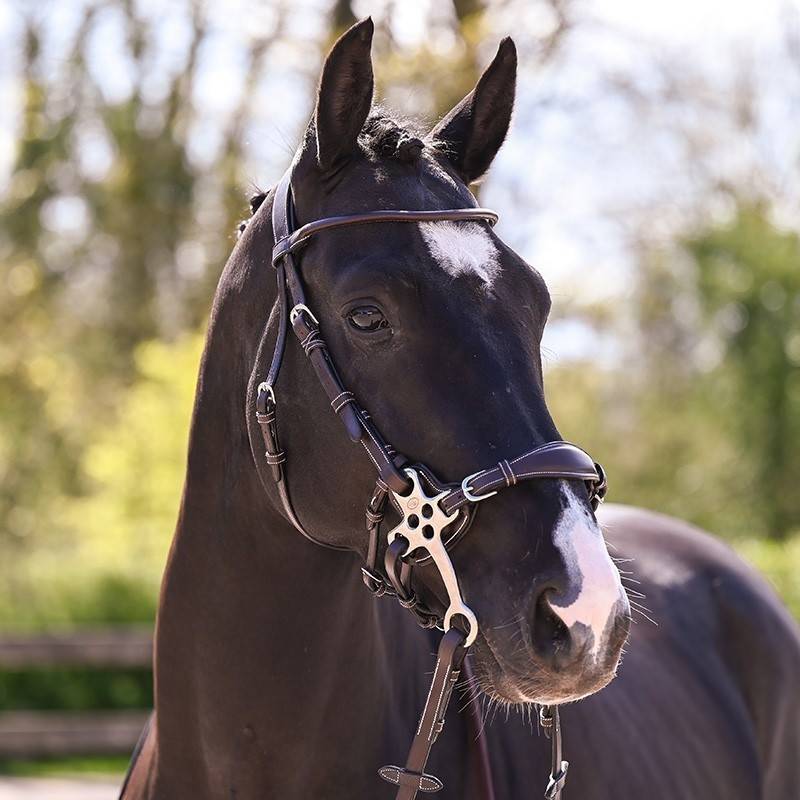 Un bridon spécialement conçu avec des montants adaptés pour cette ennasure spécifique qui permet une alternative aux mors traditionnels.