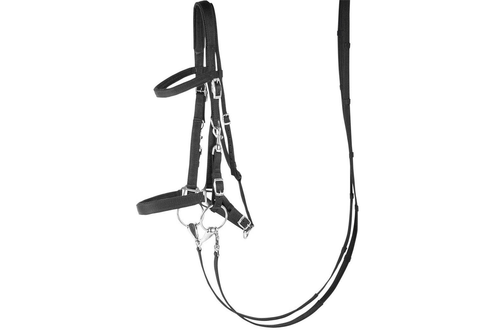 Les rênes ont des attaches à mousquetons afin de faciliter le retraits des rênes sur le bridon - licol.