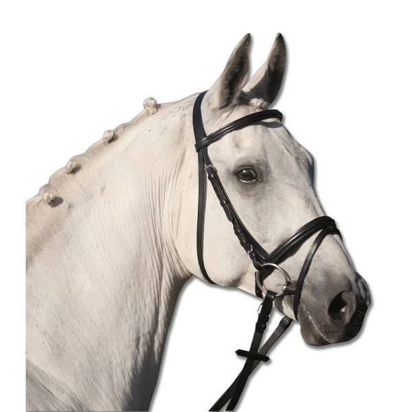 - Frontal et muserolle sont doublés de cuir doux et la bouclerie est en fer nickelé