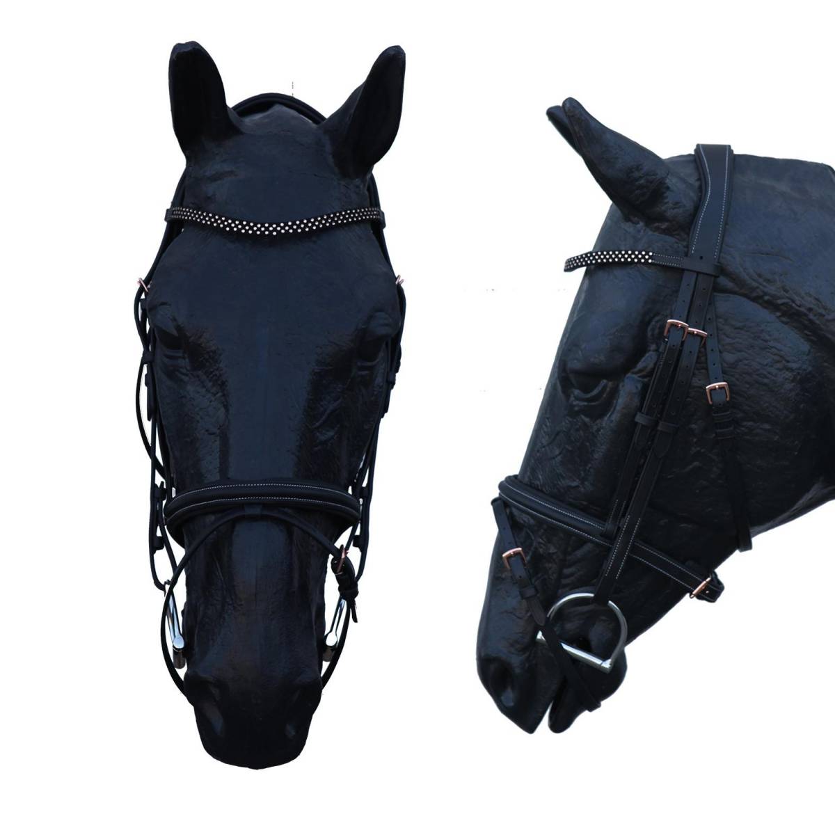 - Une têtière ergonomique doublée, évite les pressions sur la nuque du cheval et augmente son confort