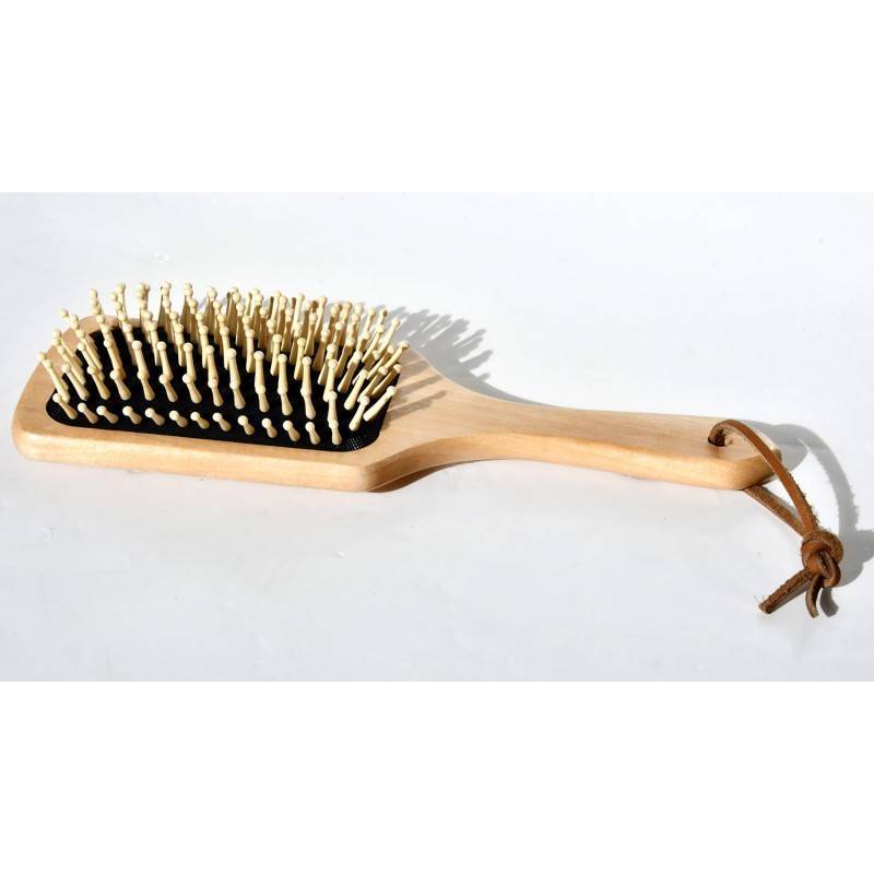 - Brosse à crins pour queue et crinière avec dos bois naturel vernis.