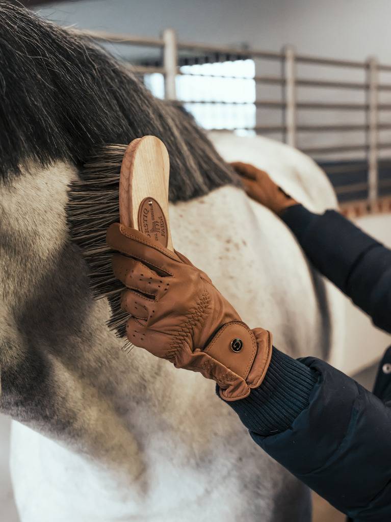 Fabriquée avec un dos en bois de hêtre et des poils souples en polypropylène flexible de 12 cm de long qui donnent une finition brillante.