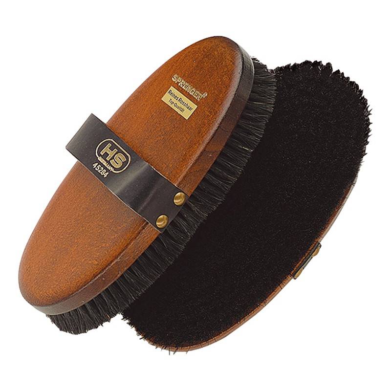 Brosse de pansage dure Sprenger en bois avec poils noirs.