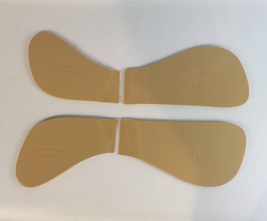Calage arrière pour les chevaux avec un rein faible ou de fortes épaules entrainant une selle plus basse à l’arrière : cales de 6 et 10 mm d’épaisseur,