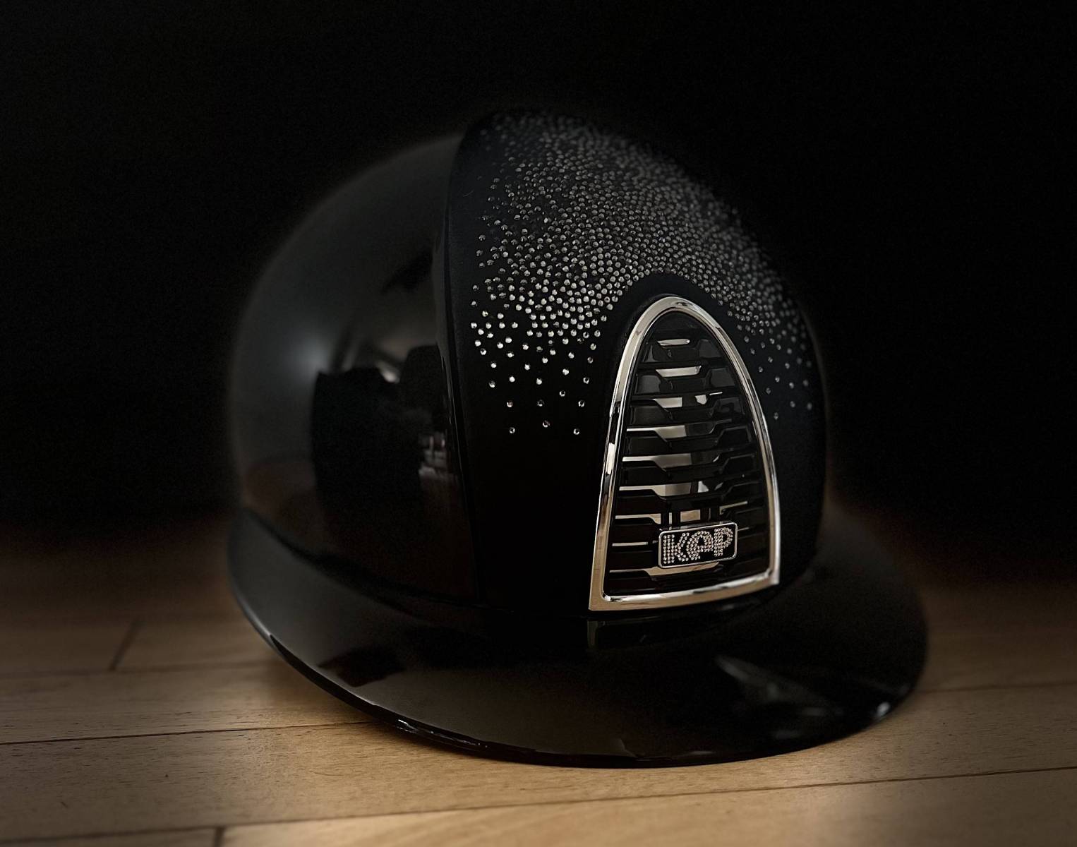 Casque d'équitation Cromo 2.0 Noir Polish Chamois argent visière POLO de la marque KEP ITALIA