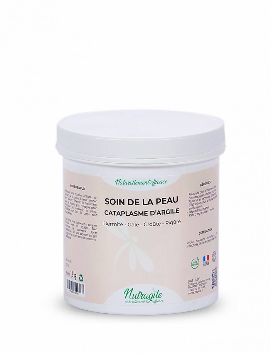Pâte d'argile préconisée pour toutes les atteintes de la peau telles que les piqûres, croûtes, gale, dermite