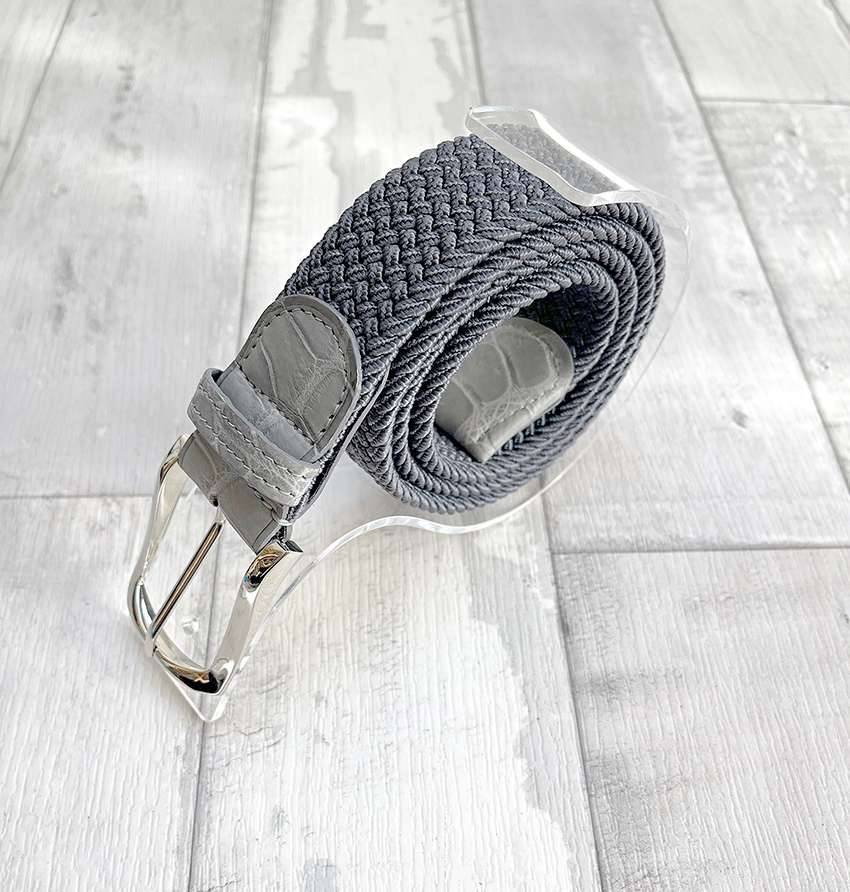 Ceinture sangle élastique gris anthracite et Croco gris clair