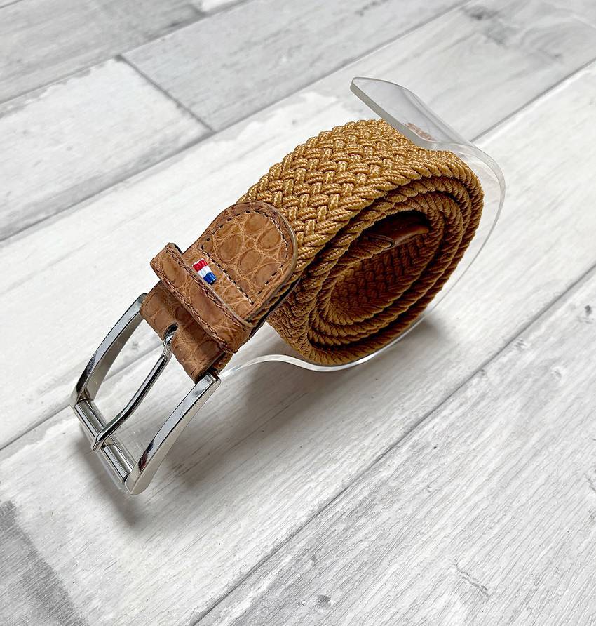 - Ceinture sangle élastique jaune doré et Croco camel