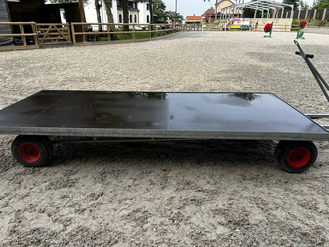 Barre de remorquage avec poignée avec œillet, avec attelage à l'arrière - Capacité de charge 1200 kg - Roues 4 roues extra larges sur roulement à billes - Finition entièrement galvanisée - Dimensions inférieures 350 x 150 cm