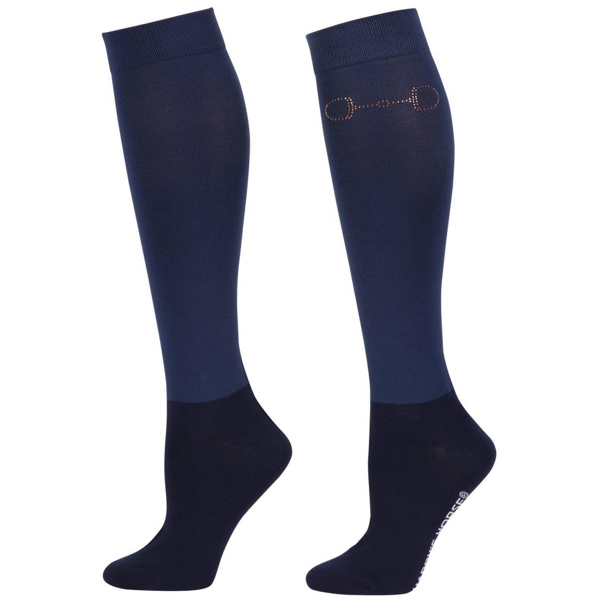 Ces chaussettes hautes sont un choix parfait pour allier confort et style tout en ajoutant une note chic à votre tenue équestre grâce à leurs cristaux décoratifs en forme de mors.