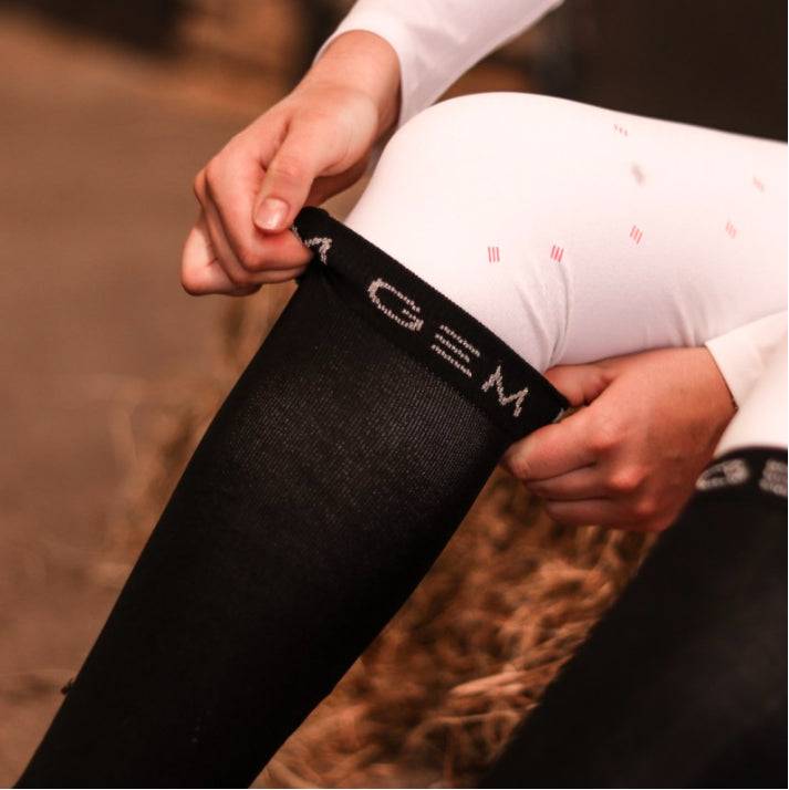 - Chaussettes noires ou marine avec le logo GEM répété sur la partie haute.