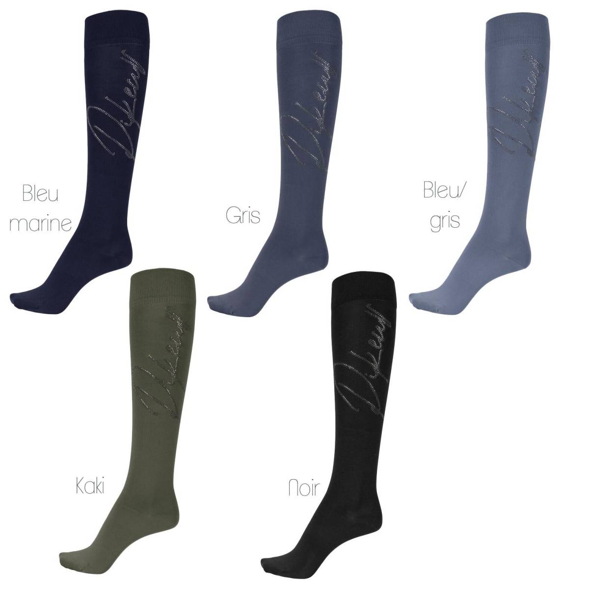 - Le nom de la marque Pikeur est repis en strass argentées sur le long de la chaussette.
