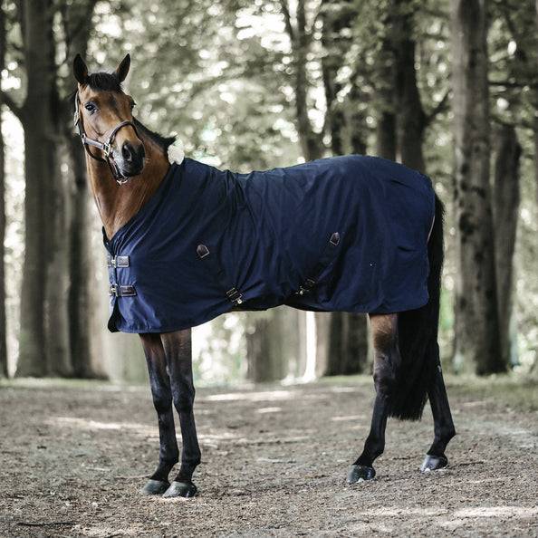 La Cotton Sheet est la couverture idéale pour que votre cheval soit à l'aise durant l'été ou le transport. Sa coupe anatomique ainsi que le mouton synthétique au garrot apportent un confort supplémentaire à votre cheval. La chemise est composée d'un mélange très solide de polyester et de coton. Le logo Kentucky Horsewear apparait sur une pièce de cuir artificiel marron donnant un aspect très chic à la chemise. Elle est dotée d'une double fermeture au poitrail ainsi que deux sursangles croisées sous le ventre du cheval, renforcées à leurs extremités avec du similicuir. La courroie de queue est amovible et est recouverte de plastique permettant un nettoyage très facile. La chemise est lavable en machine à 30 °, pas de sèche-linge.