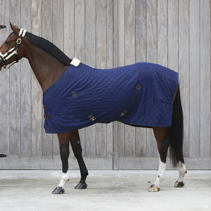 Cette chemise d'été est composée d'un tissu Quick Dry qui absorbe instantanément la transpiration et la transporte vers l'extérieur de la couverture pour qu'elle puisse s'évaporer. Le mouton synthétique protège le garrot des frottements et de toute pression. Le motif diamant matelassé du tissu extérieur en polyester 600D haute densité rend plus difficile pour le cheval de mordre et de déchirer la chemise. Elle dispose d'une double fermeture au poitrail et de deux sur-sangles croisées renforcées à leurs extrémités avec du similicuir. La courroie de queue est amovible et recouverte par du plastique, permettant un entretien aisé. La chemise toute entière est lavable en machine à 30° (pas de sèche-linge).
