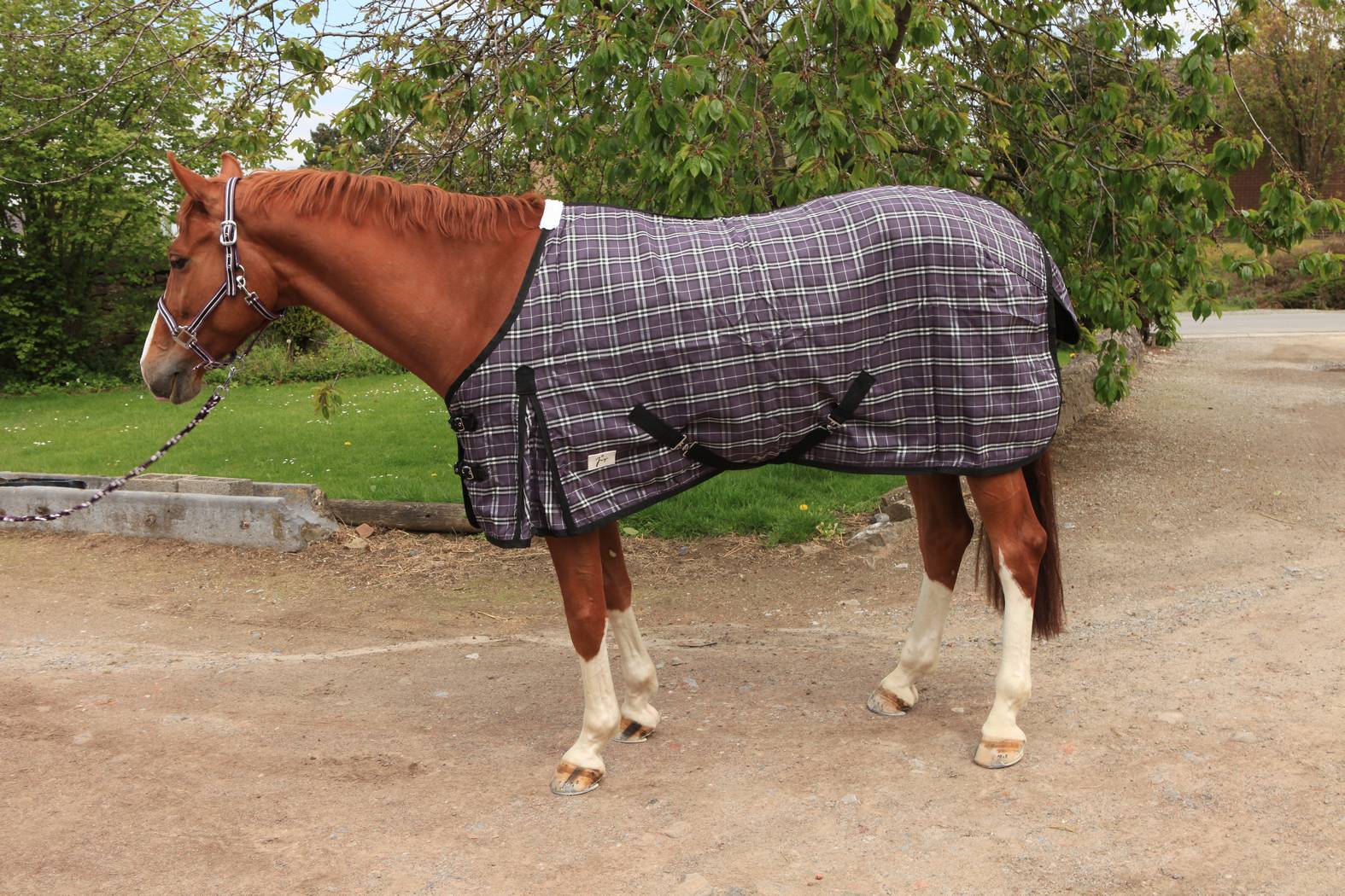Cette couverture de chez JMR est idéale pour le transport car elle est en 1200 deniers, elle est donc très solide. La couverture ne contient pas de matelassure intérieure, elle n'est donc pas trop chaude pour l'été et protègera votre shetland ou petit poney lors de ses déplacements.