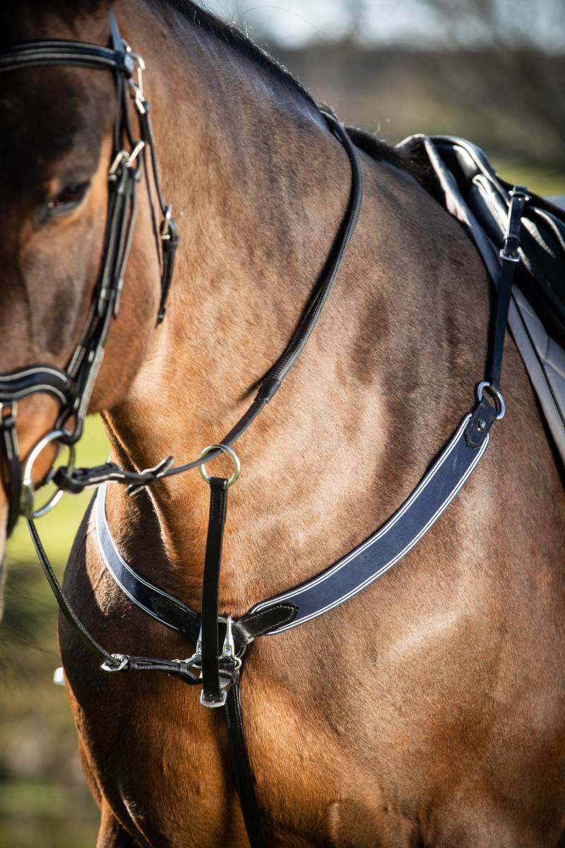 Disponible en cuir marron avec élastiques marron ou bleu marine et boucles en laiton, ou en cuir noir avec élastiques noir ou bleu marine et boucles en laiton chromé