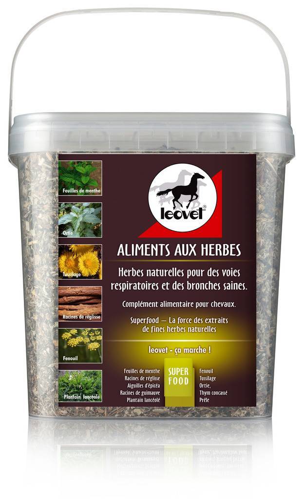 Herbes naturelles pour des voies respiratoires et des bronches saines. Les aliments aux herbes de leovet sont un mélange d’herbes pures et équilibrées. Il est recommandé de donner 1 à 2 tasses d’aliments avec une quantité double d’eau chaude, de laisser refroidir et de mélanger au fourrage. Les substances actives peuvent ainsi agir pleinement.