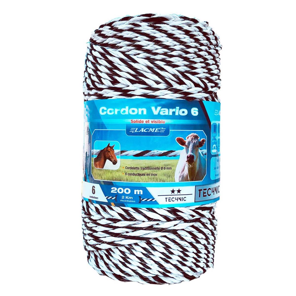 Ce cordon pour clôture électrique est de 6 mm de diamètre torsadée. Il est très visible, solide et fiable.