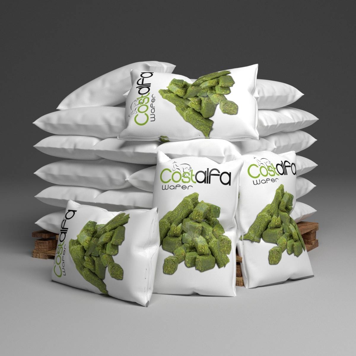 Le cube de luzerne Costalfa Wafer est composé à 99% de luzerne Déshydratée, non hachée et en fibres longues et compactée en cube de 3x3cm.