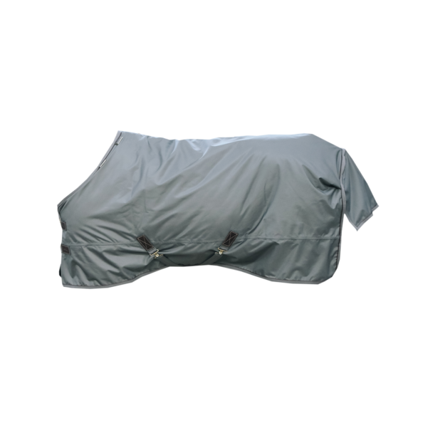 Au niveau du poitrail, des épaules et de l’encolure, les coutures et les bords sont doublés de peau de lapin artificielle pour plus de confort mais aussi pour éviter les frottements. La couverture dispose de deux boucles de poitrail classiques combinées avec une fermeture velcro résistante, deux sursangles sous le ventre et une courroie de queue élastique amovible, gansée de plastique (pour un nettoyage facile). Le rabat de la queue intégral offre une protection supplémentaire contre le vent et la pluie.