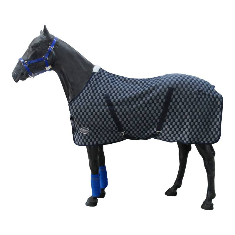 Cette couverture tricotée composée essentiellement de laine contient des fibres polaires afin de garder le cheval au chaud.