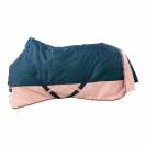 Couverture d'extérieur imperméable et respirante en polyester Ripstop 600 deniers. Coutures thermo-soudées, doublure nylon. Equipée d'un grand rabat de queue imperméable. Garot en mouton synthétique. Matelassage en polyfil. Sursangles croisées basses et courroie de queue réglable. Fermuture au poitrail par fixation rapide et renforcée par bandes auto-agrippantes.