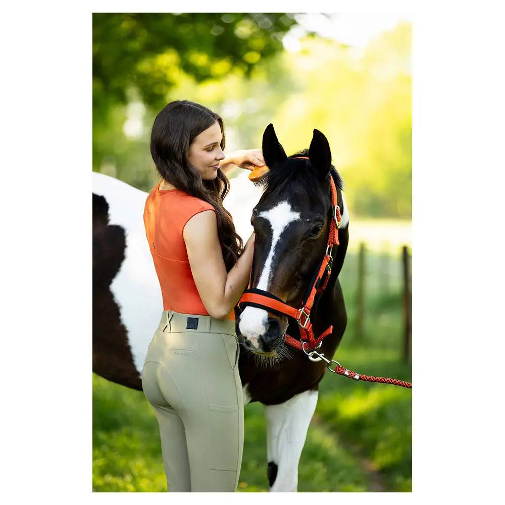 Découvrez le débardeur Dame Klaske de la marque BR, une pièce essentielle de la collection printemps-été 2026. Conçu pour les cavalières actives, ce débardeur allie légèreté et confort, vous permettant de rester à l'aise tout au long de vos séances d'équitation.