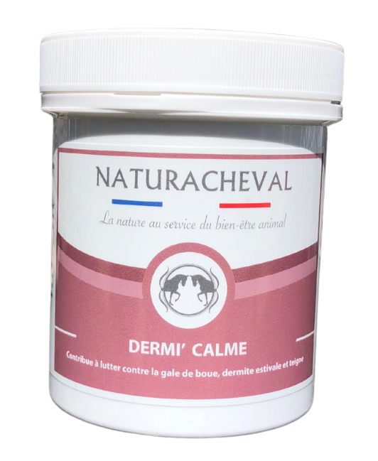 Notre baume DERMI' CALME aide à calmer les abrasions, irritations, démangeaisons et allergies cutanées chez le cheval.