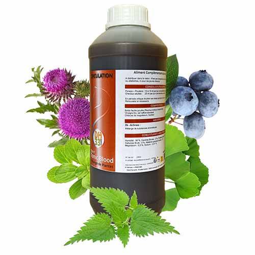 Distri'Tonic Blood contient du Ginko Biloba, du Chardon Marie, de l'Ortie, du Boldo, de la Myrtille... Le tout dans l'esprit d'aider l'organisme de votre cheval à conserver une circulation sanguine de qualité tout en étant présent pour l'accompagner dans la gestion de l'élimination des toxines (notamment Chardon Marie et Boldo) et trouver une zone de confort par l'intermédiaire entre autre de la Myrtille et de l'Ortie.