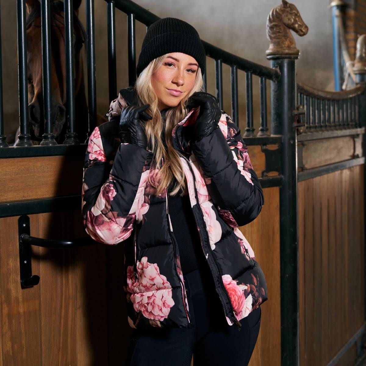 Affirmez votre personnalité avec la doudoune d'équitation Flora, une pièce phare pour les cavalières qui apprécient le style et le confort. Son imprimé floral intégral et sa coupe féminine en font un indispensable pour briller à cheval comme en ville.