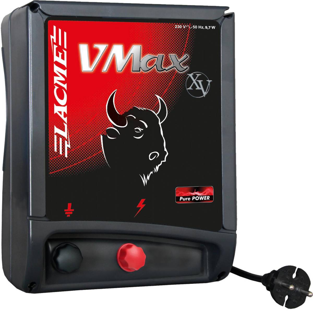 Ce nouvel électrificateur Lacmé V-max est optimisé pour une puissance extrême. Grâce à une très haute tension de 13 000 V, il conduit le courant sur les conducteurs électriques, même dans des conditions très difficiles de végétation abondante et sur de très longues distances.
