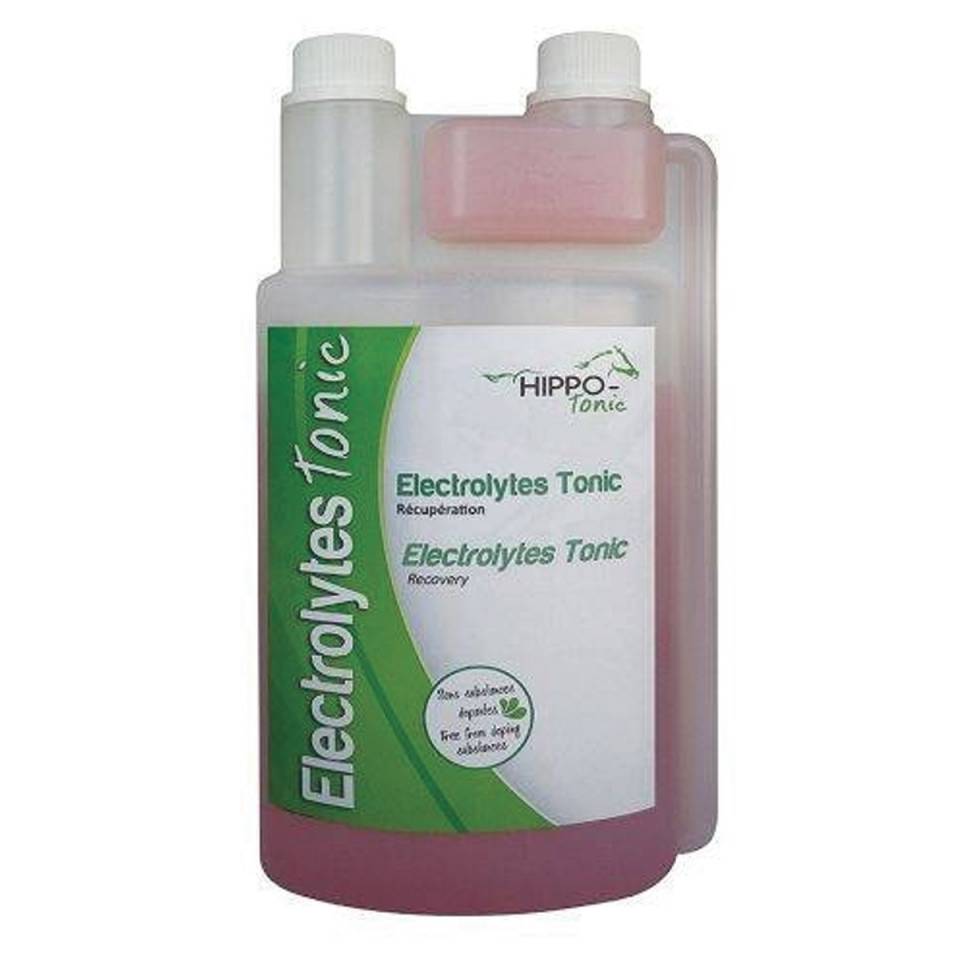 Aliment complémentaire liquide pour chevaux enrichi en électrolytes pour la récupération après un effort physique intense.