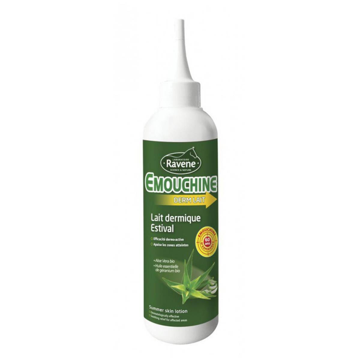 Emouchine Derm de chez Ravene est un lait spécialement formulé pour apporter un effet apaisant immédiat aux chevaux souffrant de dermite estivale. Ce produit est conçu pour protéger les zones atteintes tout en maintenant l'intégrité de la peau, offrant ainsi un soin adapté aux besoins des équidés.