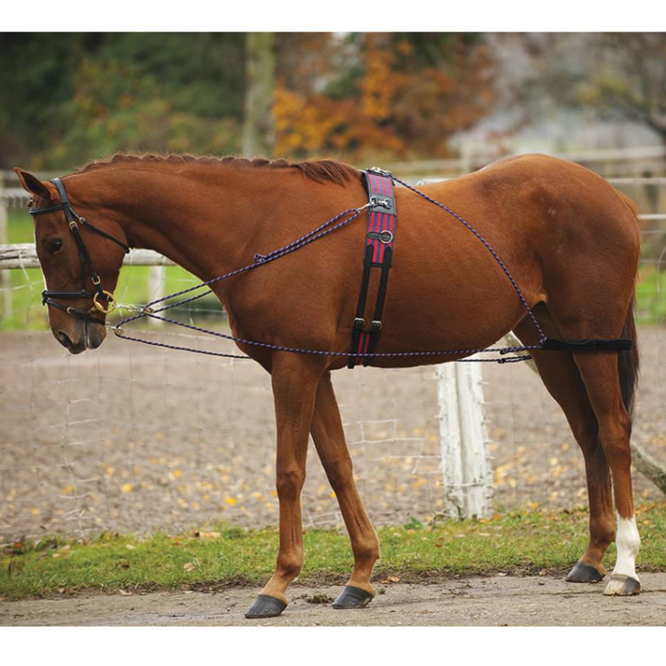Un enrênement très comple t qui favorise à la fois une bonne tenue de l'avant-main, une grande mobilité du dos et l'engagement des postérieurs du fait de son système à poulies et de son attache sur la partie supérieure du surfaix.