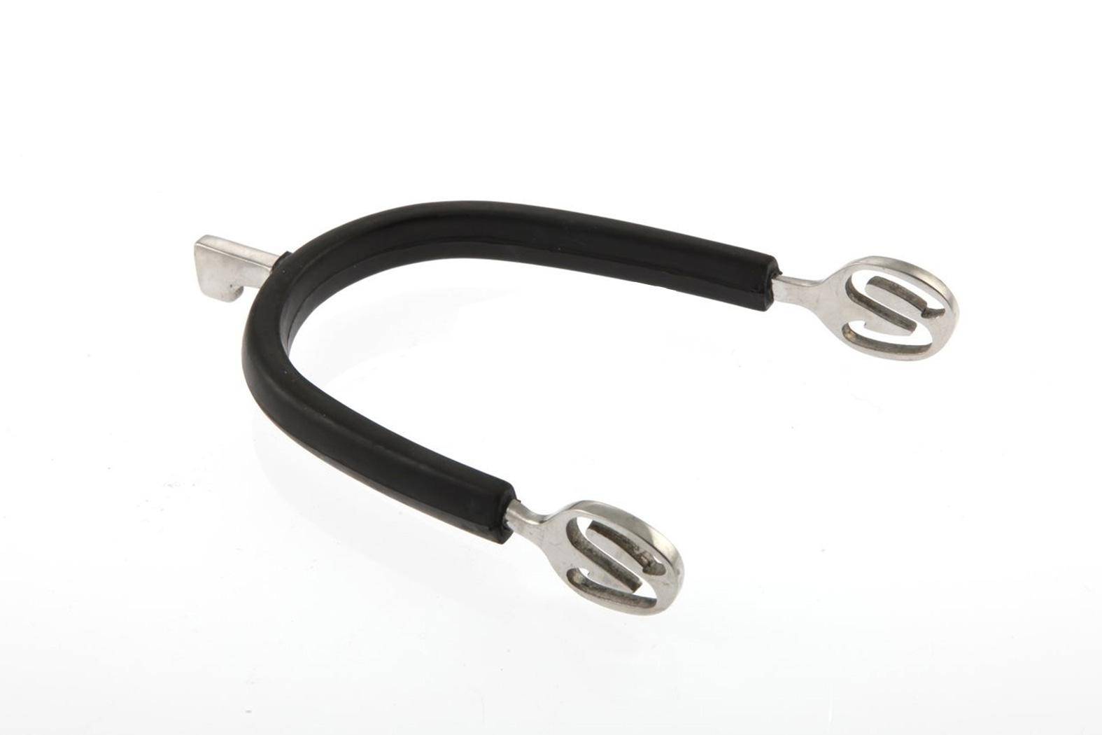 Eperon pessoa à tête marteau en inox est recouvert de caoutchouc noir antidérapant. Les oeillets en S aide au positionnement de la lanière sur la cheville et offre plus de maintien.