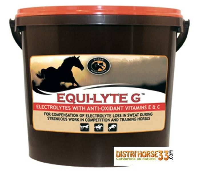 EQUI-LYTE G est destiné à compenser la perte en électrolytes chez le cheval et favoriser la récupération, grâce à sa formule enrichie en vitamines E et C.