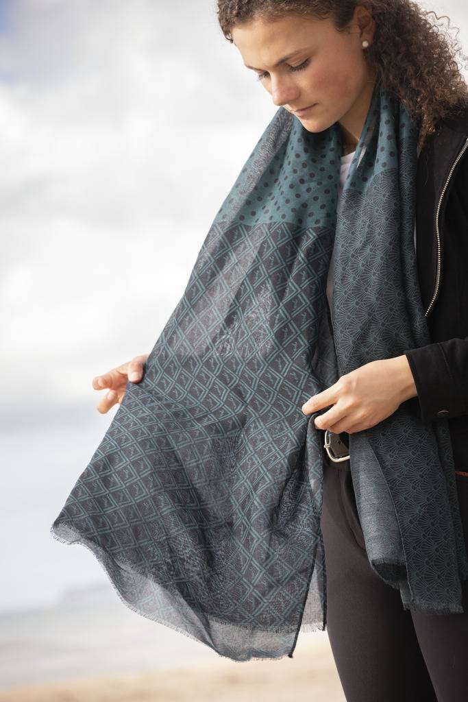 Notre étole Alix est légère et délicatement marquée du logo Pénélope.