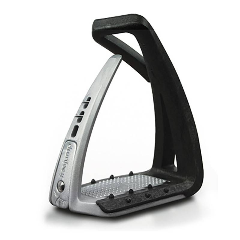 Etrier de sécurité mono-branche modèle Soft Up Lite Silver de chez Freejump, optimisé pour les cavaliers junior (pointure 37 maximum ou 38/39 si pied fin), dessiné sur le même principe que les étriers Soft Up Pro .