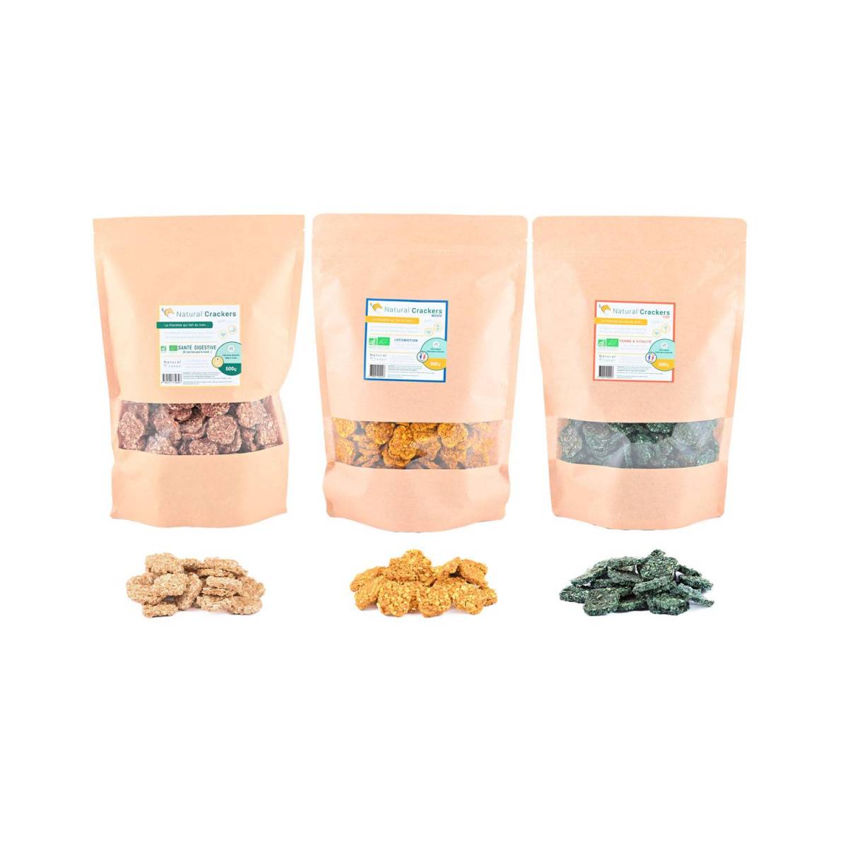 Natural'Crackers (chevaux) la friandise qui fait du bien, est un complément nutritionnel sous forme de biscuits gourmands certifiés Agriculture Biologique pour chevaux et poneys visant à apporter un confort digestif, locomoteur ou une bonne forme en plus du soutien moral pour lequel il est généralement proposé. Il peut s’utiliser en parallèle d’une cure de Natural’Digest, Natural’Top, Natural’Moov ou seul.