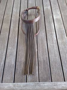 Le frontal (ou browband) est la pièce qui traverse le front du cheval, juste en dessous des oreilles, entre les deux montants de têtière.