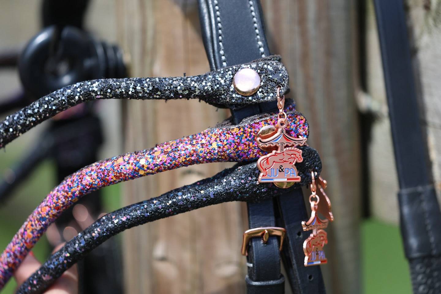 Découvrez le frontal Disco de la marque Ju & Pa, conçu en cuir tanné végétal et orné d'un galon disco disponible en noir ou bleu marine. Sa conception pratique avec fermeture à pression facilite son installation, tout en ajoutant une touche esthétique grâce à la petite médaille Ju et Pa située sur le côté.