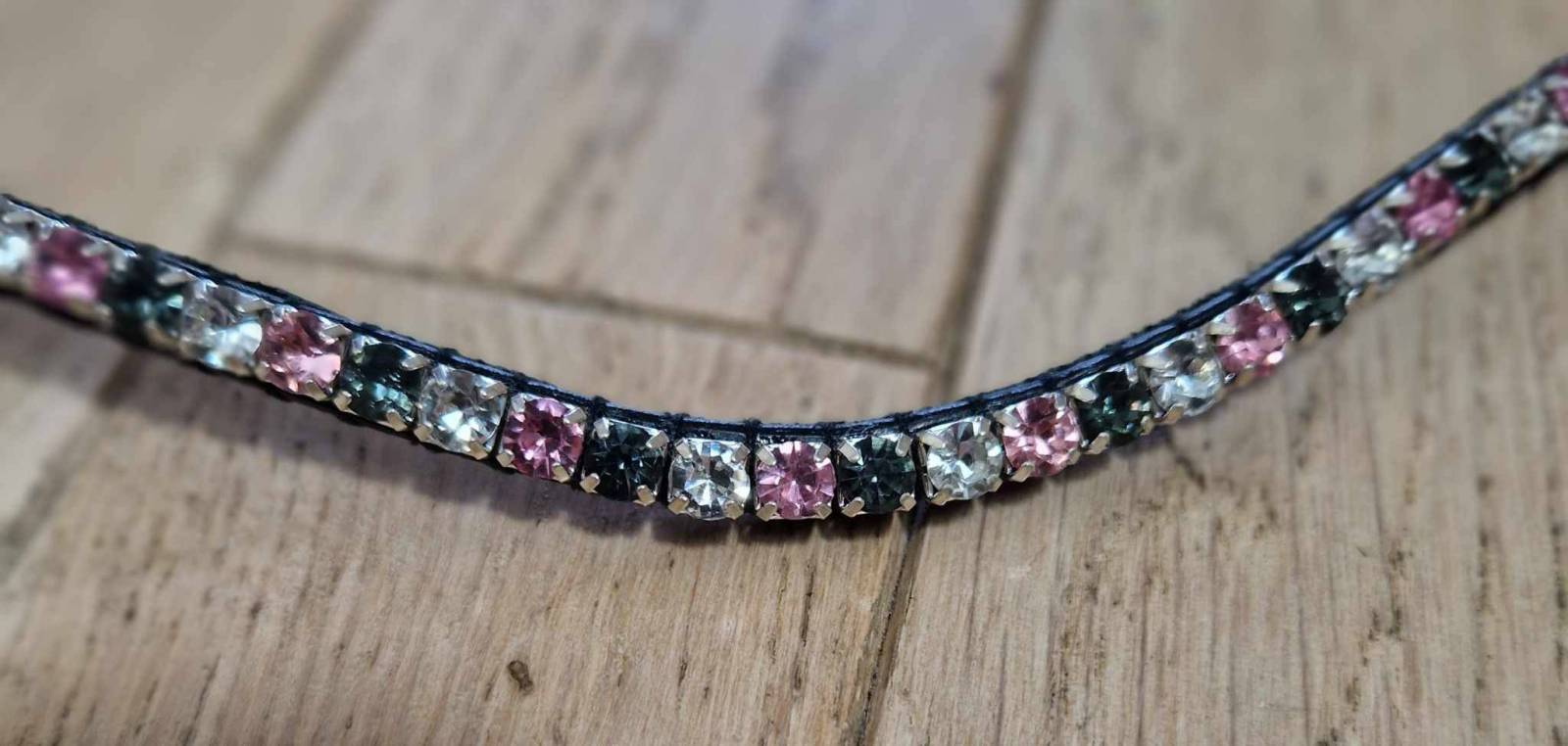- Frontal d'équitation avec des strass blanc, gris et rose