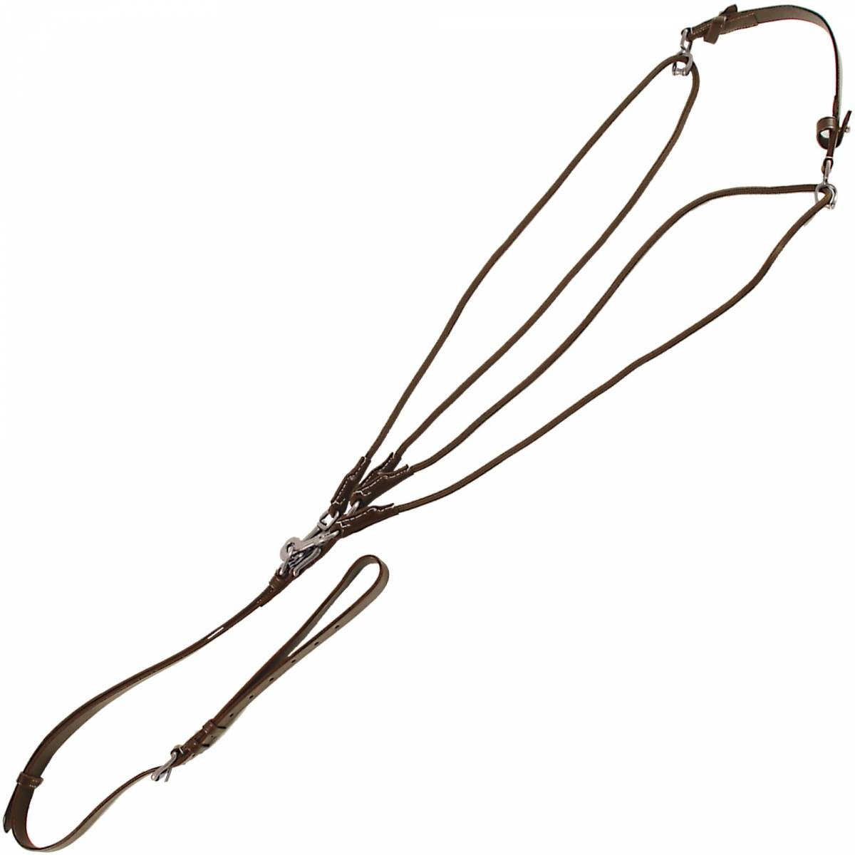 Enrênement visant à limiter les déplacements de la tête et de l'encolure dans un triangle de dimension variable.