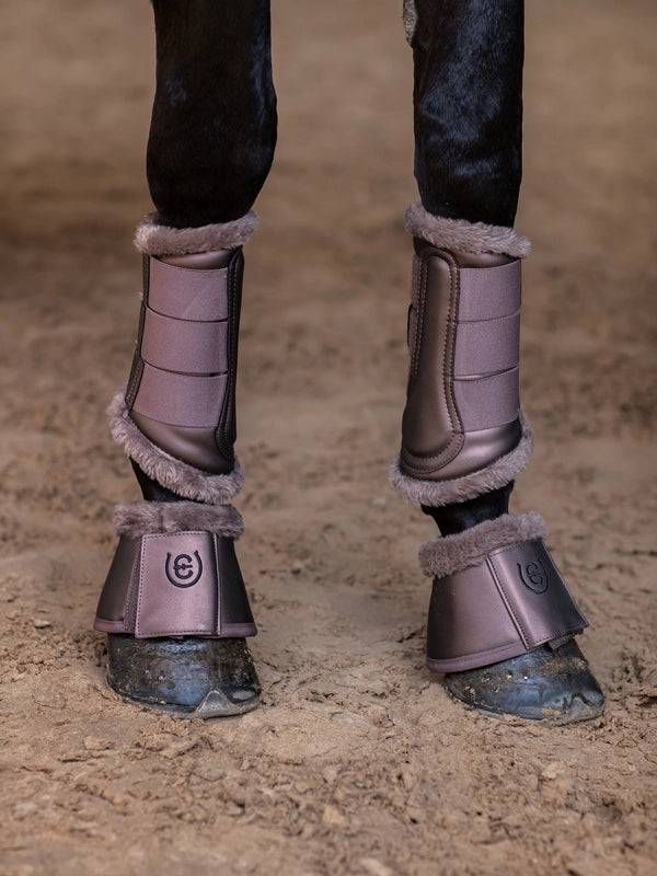 Découvrez les guêtres Amaranth d'Equestrian Stockholm, conçues pour offrir un ajustement optimal tout en alliant style et confort pour votre cheval. Ces guêtres, de couleur marron avec des touches de violet et des détails noirs, sont fabriquées en cuir synthétique de haute qualité avec une finition matte. L'intérieur est revêtu d'une fausse fourrure douce, garantissant le bien-être de votre cheval.