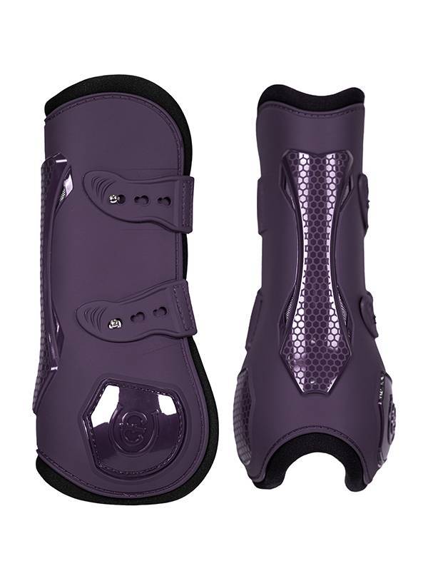 Nos guêtres anatomiques légères pour tendons (approuvées par la FEI) ont été conçues pour protéger les chevaux lors des sauts d'obstacles. Elles permettent de réduire l'impact sur les pattes avant tout en soutenant le tendon. Conçues dans un coloris violet foncé avec une doublure noire. Elles sont fabriquées avec une coque en polyuréthane thermoplastique (TPU) qui les rend résistantes à l'eau.